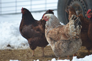 Our flock enjoys free range during the day. For their protection and our peace of mind, they sleep in the comfort of the chicken house at night.